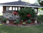 pond and waterfall and the abundance of flowers all over