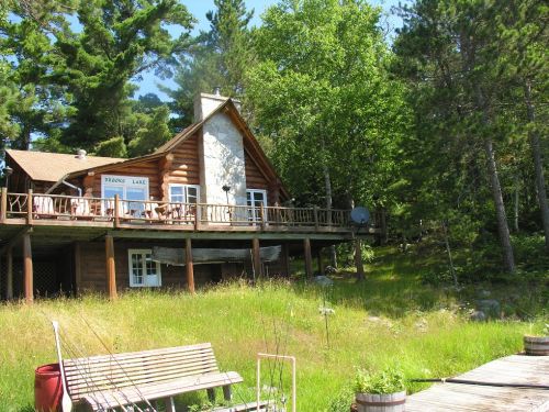 U$ 600.000 5 acres deeded property (more than 100 years) - only place on the lake - very remote - no roads - must fly in - 25 miles from Nestor Falls, Ontario - 300 miles north of Minneapolis ! This is one of the best Largemouth Bass fishing lakes in the area ! Not unusual for 2 fishermen to catch more than 100 fish a day - fly fishing is fantastic ! 12 mostly log buildings with fully equipped and furnished nice lodge and 4 guest cabins - total 10 bedrooms (some bedrooms have more than 1 bed), can sleep more than 20 ! Fully equipped tool cabin - a motor storage cabin with 15 outboard motors, new toilet building with 2 separate flush toilets and wash basins. Shower building with 2 hot and cold water showers. Laundry cabin with washer/dryer. New exercise cabin with treadmill and weight machine. Fish cleaning building with running water and a tackle room for rod/reel and lure storage plus 2 covered storage areas for firewood. Has a water tower for water storage direct from the lake. Only neighbors are bears - moose - elk - deer - small critters - loons - eagles and lots of fish. There are no electric or telephone poles or cell phone towers in the area so satellite dish provides service for internet and telephone. Has 4 gasoline generators - and several propane tanks. 2 ATV's - a log spliter and a portable saw mill. Has 9 aluminuim fishing boats and 1 canoe at the main location. Has a septic system capable of serving 30 guests (approved by Canadian Health). There are several other lakes in the area and portages (trails) have been cut to the nearby surrounding lakes where boats and motors are located. This remote fishing location would be ideal for a small corporate retreat - or use as a reward for employees or meetings or a customer reward.
